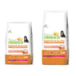 Natural Trainer Sensitive No Gluten Puppy e Junior con Salmone è un alimento secco completo e bilanciato, pensato per cuccioli di taglia media e grande, dai 1 agli 8 mesi di età. È la scelta ideale per garantire una crescita armoniosa e uno sviluppo sano durante la fase più delicata della vita del tuo cucciolo.